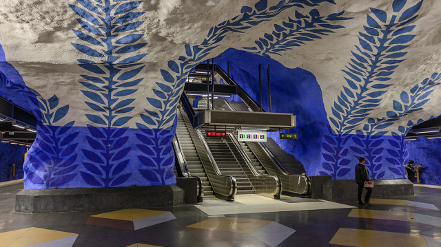 Το δίκτυο μετρό της Στοκχόλμης θεωρείται στο σύνολό του μια μόνιμη έκθεση τέχνης, καθώς περισσότεροι από 150 αρχιτέκτονες, ζωγράφοι και γλύπτες φιλοτέχνησαν τους σταθμούς του από τη δεκαετία του ’50 μέχρι σήμερα, μετατρέποντάς τους σε αξιοθέατα. Ο πιο γνωστός είναι ο T-Centralen, με τις μπλε και λευκές τοιχογραφίες γεμάτες μοτίβα από φύλλα και λουλούδια. Το μπλε χρώμα επιλέχθηκε γιατί προάγει την ηρεμία, τη γαλήνη και τη σταθερότητα σε ένα περιβάλλον που χαρακτηρίζεται από διαρκή κίνηση και γρήγορους ρυθμούς.