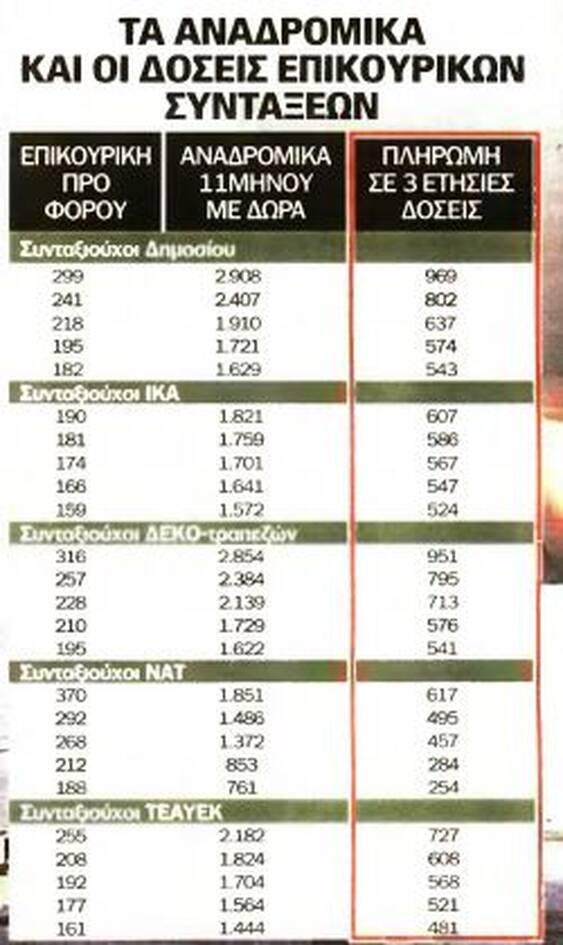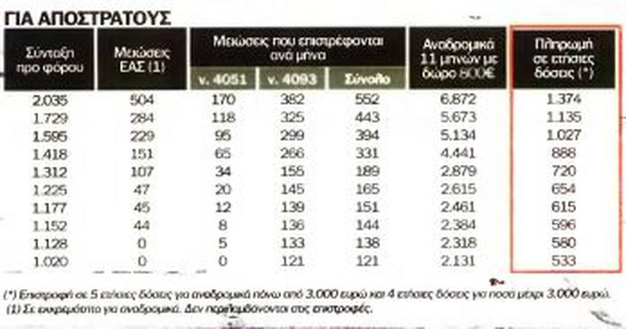 Επιστροφές αναδρομικών σε δόσεις 5 ετών για ποσά πάνω από 3.000 ευρώ.