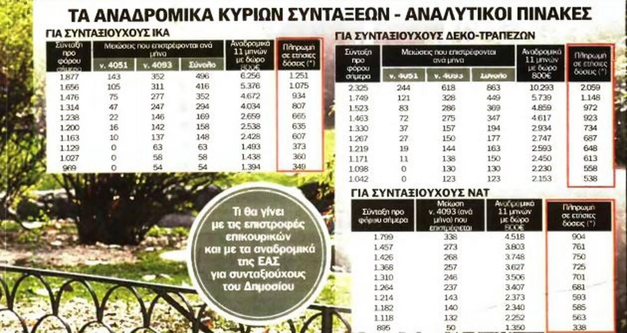 Στις κύριες συντάξεις τα αναδρομικά μπορεί να φτάνουν έως και 11.000 ευρώ για τις πολύ υψηλές συντάξεις ή τις διπλές κύριες συντάξεις.
