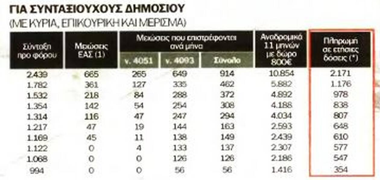 Για παράδειγμα αν επιστραφούν και στους συνταξιούχους του Δημοσίου τα αναδρομικά του 11μήνου το συνολικό κόστος εκτιμάται στα 3,9 δισ ευρώ.