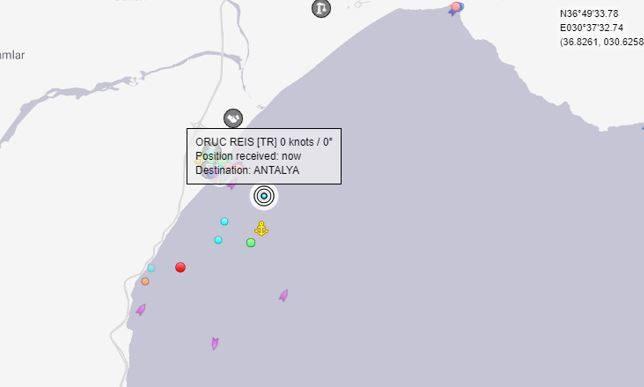 Άλλωστε, όπως θα δείτε και στο marine traffic, το τουρκικό ερευνητικό παραμένει αγκυροβολημένο ανοιχτά της Αττάλειας, χωρίς να έχει μετακινηθεί καθόλου από τη θέση του, μετά την έκδοση της παράτυπης τουρκικής NAVTEX για έρευνες ανοιχτά του Καστελόριζου.