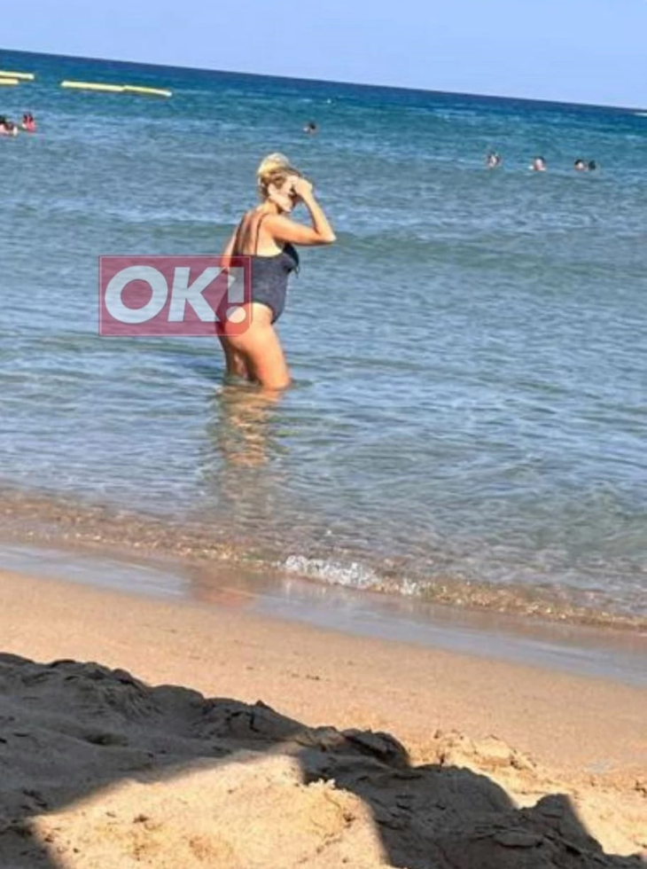 Η Κωνσταντίνα Σπυροπούλου φόρεσε ένα ολόσωμο animal print μαγιό και με φανερά φουσκωμένη κοιλίτσα έκανε τις βουτιές της.