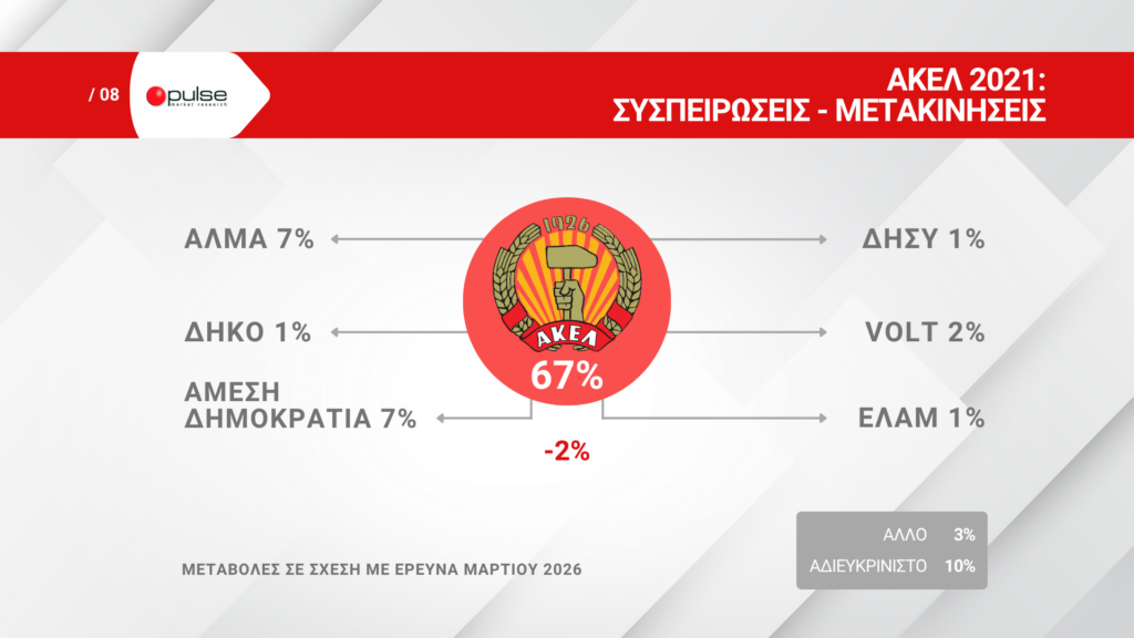 Δείχνει μια σταθερότητα, αλλά και κάποιες διαφοροποιήσεις, στις τάξεις του ΔΗΣΥ, του ΑΚΕΛ και του ΔΗΚΟ. Ωστόσο, το πραγματικό ενδιαφέρον στρέφεται προς το κομμάτι του πληθυσμού που δηλώνει αναποφάσιστο, καθώς η μετατόπιση ψήφων σε αυτήν την ομάδα μπορεί να επηρεάσει δραματικά την τελική κατανομή της κοινοβουλευτικής δύναμης. Το κόμμα που προηγείται στους αναποφάσιστους, αν καταφέρει να διατηρήσει ή να αυξήσει αυτά τα ποσοστά, μπορεί να βρεθεί σε πλεονεκτική θέση. Τα δεδομένα της δημοσκόπησης υπογραμμίζουν την ευμετάβλητη φύση της κοινής γνώμης σε ένα προεκλογικό περιβάλλον, όπου η επικοινωνία και οι ατζέντες των κομμάτων παίζουν καθοριστικό ρόλο. Η εκστρατεία για προσέλκυση των αναποφάσιστων ψηφοφόρων, οι οποίοι συχνά είναι πιο ευαίσθητοι σε νέα μηνύματα και προτάσεις, αναμένεται να ενταθεί τις επόμενες εβδομάδες. Το γεγονός ότι ένα κόμμα-έκπληξη φαίνεται να κερδίζει την εμπιστοσύνη αυτών των ψηφοφόρων, ενώ άλλοι, θεωρητικά πιο εδραιωμένοι, δεν επιτυγχάνουν, σηματοδοτεί πιθανές αλλαγές στη δυναμική του πολιτικού σκηνικού.