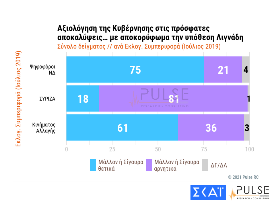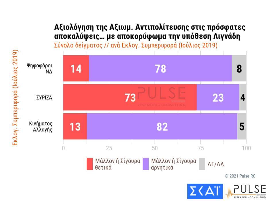 Ενδιαφέρον παρουσιάζει το γεγονός πως η κυβέρνηση δείχνει να πλήττεται -αν και όχι ιδιαίτερα- από την επικοινωνιακή διαχείριση της υπόθεσης Λιγνάδη, κάτι που ωστόσο φαίνεται να πλήττει έτι περαιτέρω τόσο την αξιωματική αντιπολίτευση όσο όμως και το Κίνημα Αλλαγής.