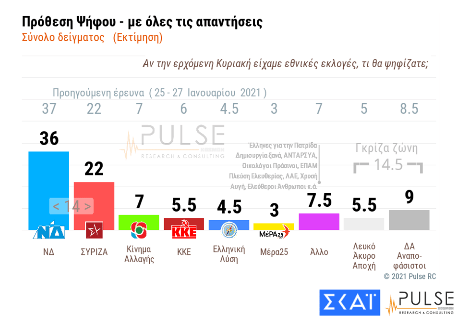 Η πρόθεση ψήφου στη δημοσκόπηση της Pusle