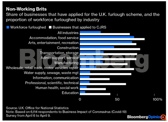 Ο Απρίλιος έχει ήδη δει τις περισσότερες χρεοκοπίες μεγάλων εταιρειών παγκοσμίως σε έναν μόνο μήνα (32) από την εποχή της οικονομικής κρίσης του 2008-2009. Οικονομικά στοιχεία τα οποία δημοσιεύθηκαν την Τετάρτη έδειξαν ότι η οικονομία του Ηνωμένου Βασιλείου συρρικνώθηκε κατά σχεδόν 6% τον Μάρτιο. Η τρέχουσα θα μπορούσε να είναι η βαθύτερη ύφεση στη χώρα εδώ και περισσότερους από τρεις αιώνες.
