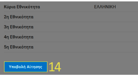 14. Μια προεπισκόπηση όλων των προσωπικών στοιχείων σας θα εμφανιστεί στην οθόνη σας. Αν είναι όλα εντάξει, πατήστε στο κάτω μέρος την επιλογή «Υποβολή Αίτησης».