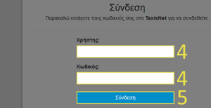 4. Στα πεδία «Χρήστης» και «Κωδικός» πληκτρολογήστε τα στοιχεία του TAXISnet λογαριασμού σας.