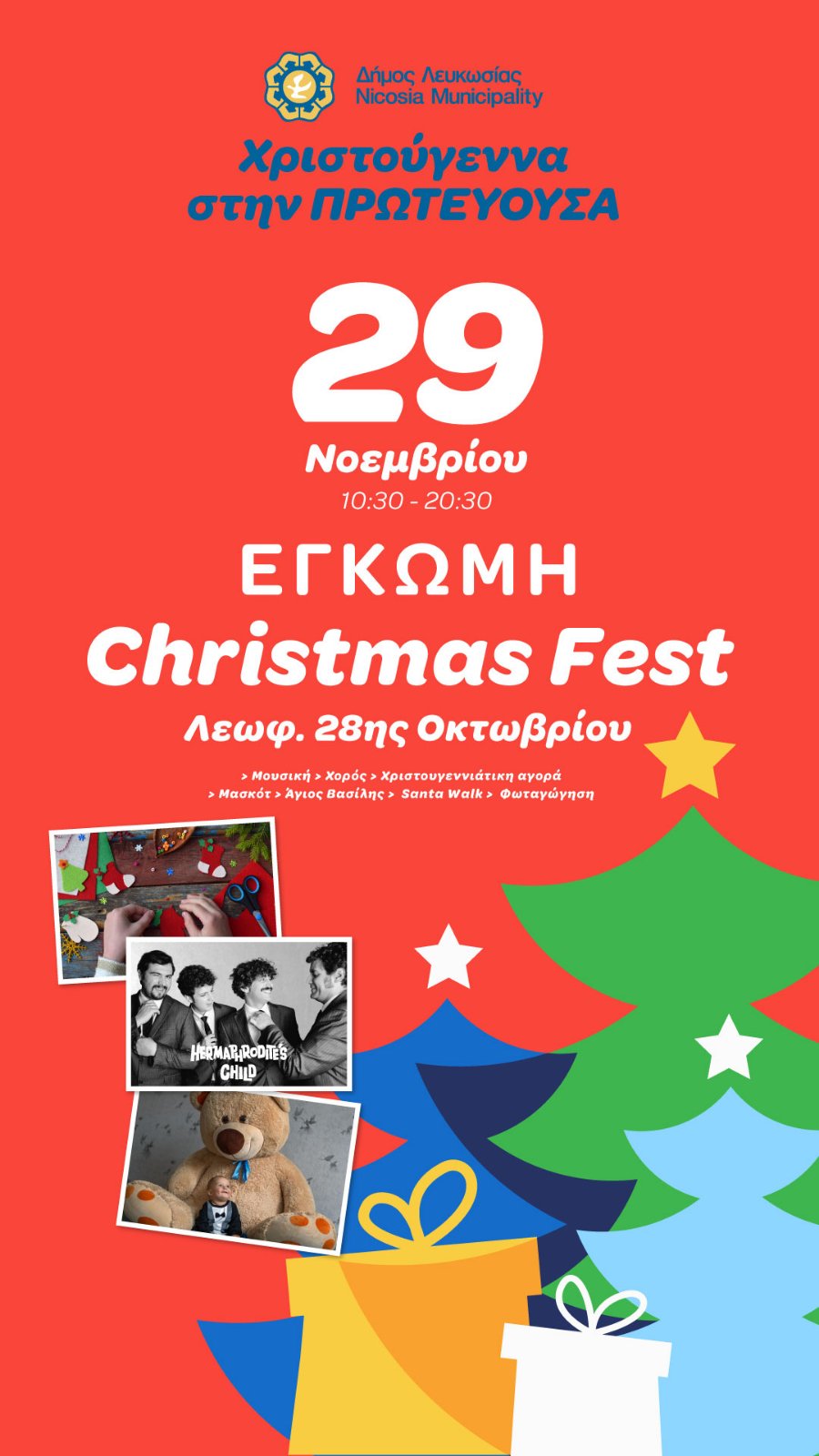Και όταν η μέρα φτάσει στο πιο μαγικό της σημείο, στις 18:30, η εντυπωσιακή φωταγώγηση θα πλημμυρίσει την Έγκωμη με χιλιάδες λαμπιόνια, σηματοδοτώντας επίσημα την έναρξη της χριστουγεννιάτικης περιόδου. Τη γιορτινή ατμόσφαιρα συμπληρώνουν ιδανικά οι δύο live εμφανίσεις της ελληνικής μπάντας Hermaphrodites Child, που υπόσχονται να κλείσουν τη μέρα με ρυθμό, ενέργεια και ζεστή διάθεση.