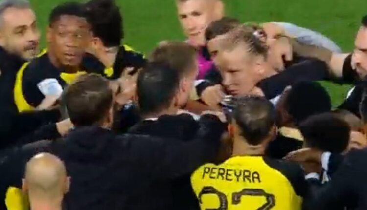 Ποδοσφαιριστές και από τις δύο πλευρές είτε επενέβησαν για να ηρεμήσουν την κατάσταση, είτε αντάλλαξαν λόγια, αλλά τελικά επικράτησαν οι ψυχραιμότεροι και οι ομάδες οδηγήθηκαν χωρίς περαιτέρω επεισόδια στα αποδυτήρια.