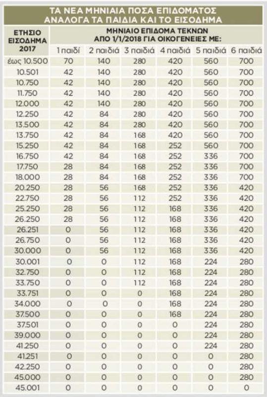 Προκαταβολή του νέου επιδόματος τεκνών ως το τέλος Μαρτίου του 2018 με βάση τα εισοδήματα που απέκτησαν το 2016 και δήλωσαν το 2017, θα λάβουν σε πρώτη φάση οι οικογένειες που έχουν 1, 2, 3 ή και περισσότερα παιδιά.
