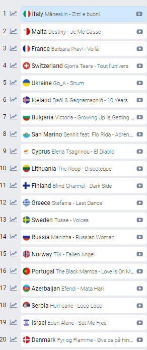 Παρ΄ όλα αυτά δεν βγαίνει πρώτη, αλλά τέταρτη ή πέμπτη στα στοιχήματα μεταξύ των χωρών του ημιτελικού.
