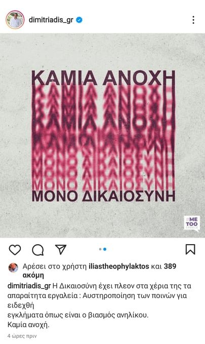 «Η Δικαιοσύνη έχει πλέον στα χέρια της τα απαραίτητα εργαλεία: Αυστηροποίηση των ποινών για ειδεχθή εγκλήματα όπως είναι ο βιασμός ανηλίκου. Καμία ανοχή», υπογραμμίζει ο Γενικός Γραμματέας του Πρωθυπουργού.