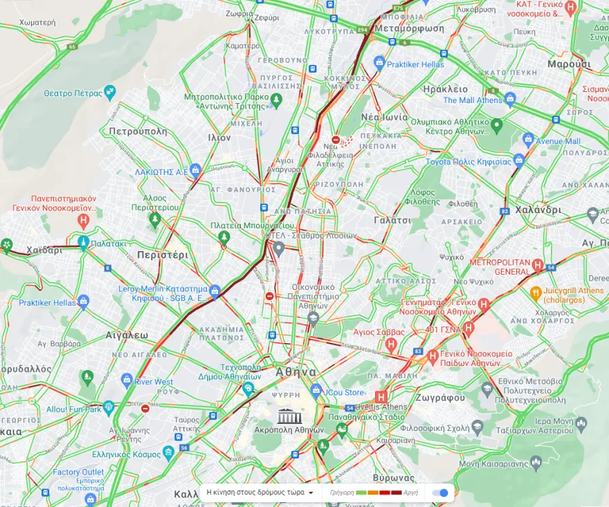 Η κίνηση στους δρόμους (Google ώρα 07:30)
