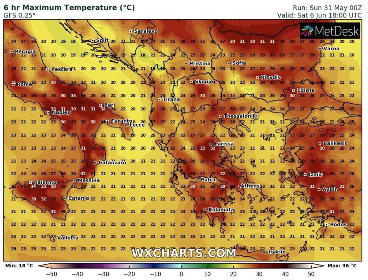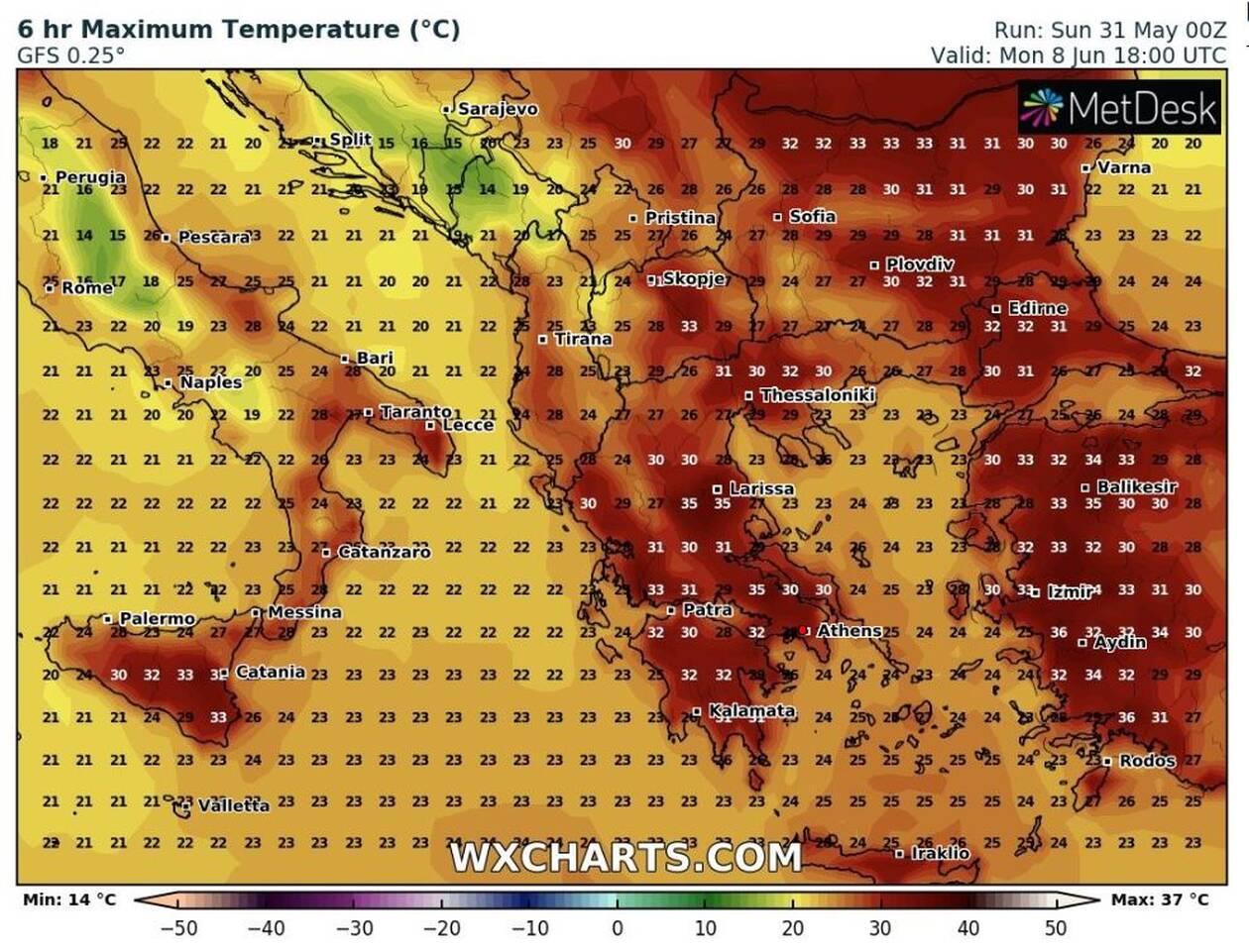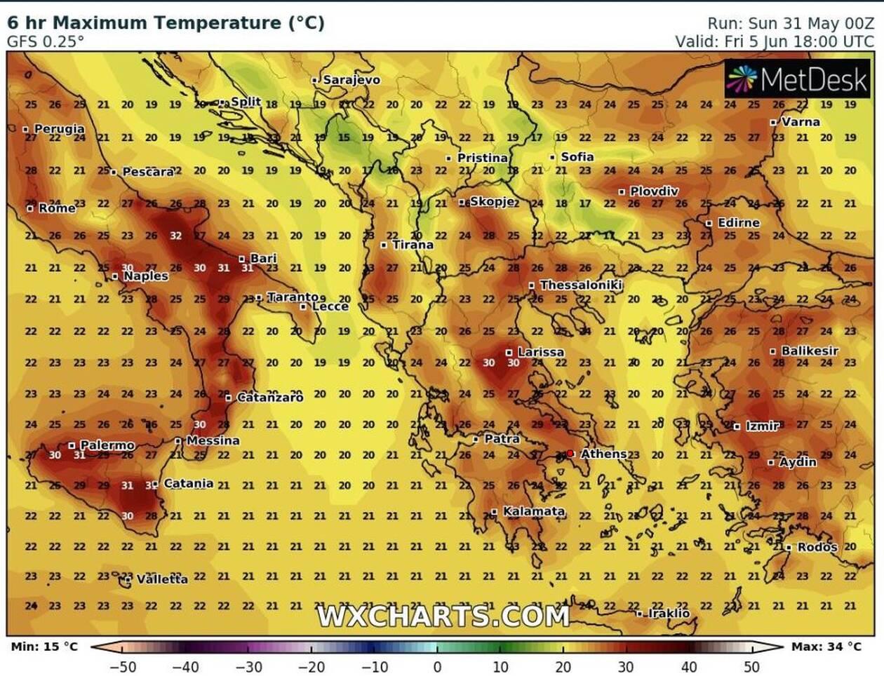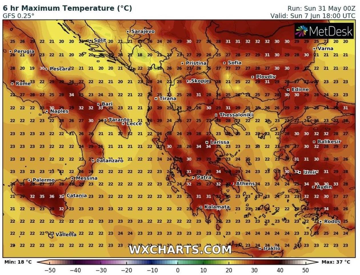 Κυριακή 7 Ιουνίου, η πιο ζεστή μέρα με θερμοκρασίες έως και 37 βαθμούς τοπικά…