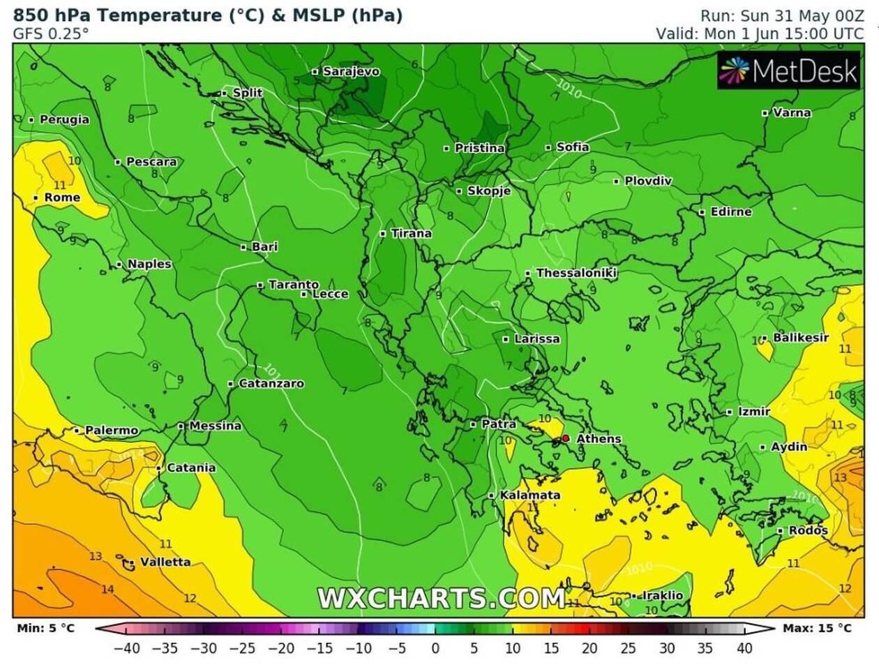 Δείτε αναλυτικά παρακάτω την εξέλιξη των θερμοκρασιών στην Ελλάδα από σήμερα, μέχρι και την επόμενη Τρίτη 9 Ιουνίου