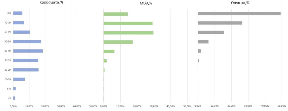 Η διάμεση ηλικία των κρουσμάτων είναι 44 έτη (εύρος 0.2 έως 105 έτη), ενώ η διάμεση ηλικία των θανόντων είναι 79 έτη (εύρος 0 έως 103 έτη).
