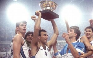 Το κείμενο έχει τίτλο «Ο μικρόσωμος θεός» και αναφέρεται στην παρουσία του Hall of Famer στην τεράστια επιτυχία της Εθνικής το 1987.