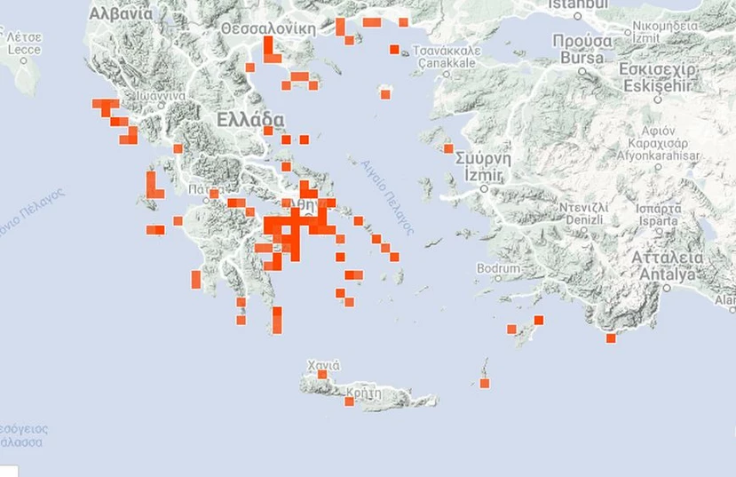 Εδώ μπορείτε να δείτε τον χάρτη με τις καταγραφές όλων των ειδών μεδουσών για το 2022