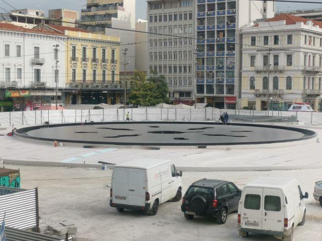Υπομονή λίγων εβδομάδων θα κάνουν οι Αθηναίοι για να δουν την νέα πλατεία Ομονοίας. Σήμερα στην πλατεία έχει ήδη εγκατασταθεί το τεράστιο σιντριβάνι διαμέτρου 30 μέτρων.