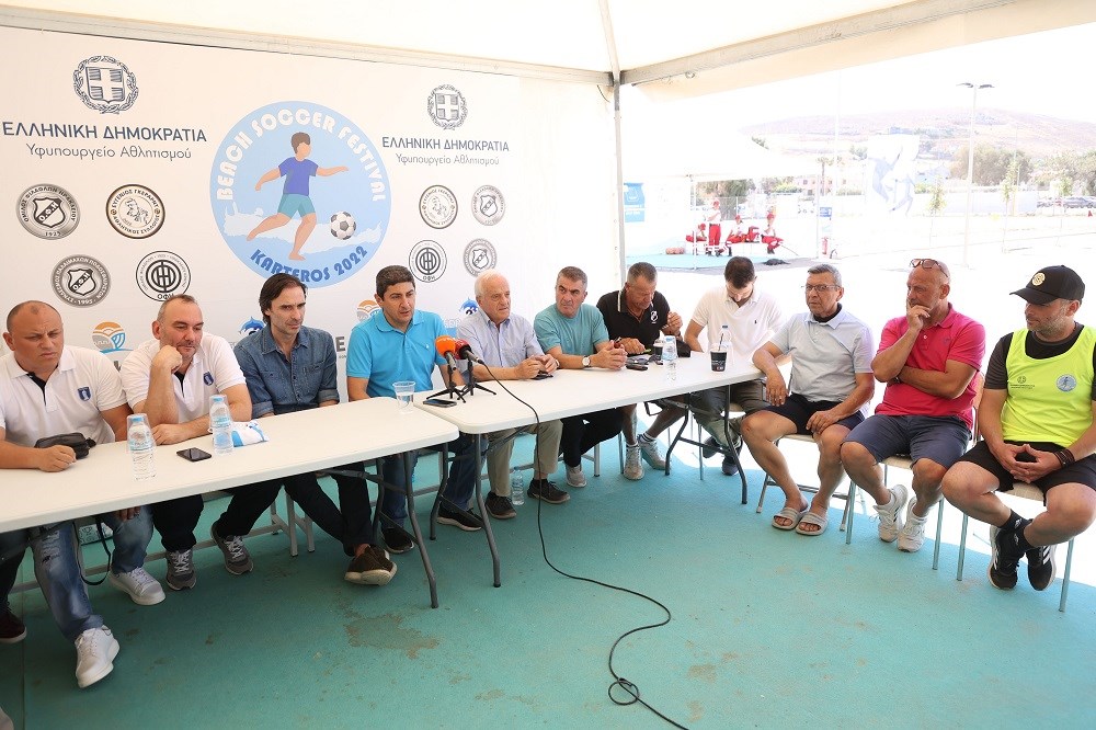 Η «αναβίωση», με αγώνα ποδοσφαίρου στην άμμο, θα ολοκληρώσει αύριο το βράδυ το 4ήμερο Παγκρήτιο Beach Soccer Festival, στο Karteros Beach Sports Center και οι διοργανωτές του (σύσσωμη η οικογένεια του ΟΦΗ -Ερασιτέχνης, Παλαίμαχοι με την υποστήριξη της ΠΑΕ- ο αθλητικός σύλλογος «Ευγένιος Γκέραρντ», το ΕΑΚ Ηρακλείου και η Οργανωτική Επιτροπή των 3ων Μεσογειακών Παράκτιων Αγώνων «Ηράκλειο 2023»), παρέθεσαν Συνέντευξη Τύπου, παρουσία του Υφυπουργού Αθλητισμού, Λευτέρη Αυγενάκη.