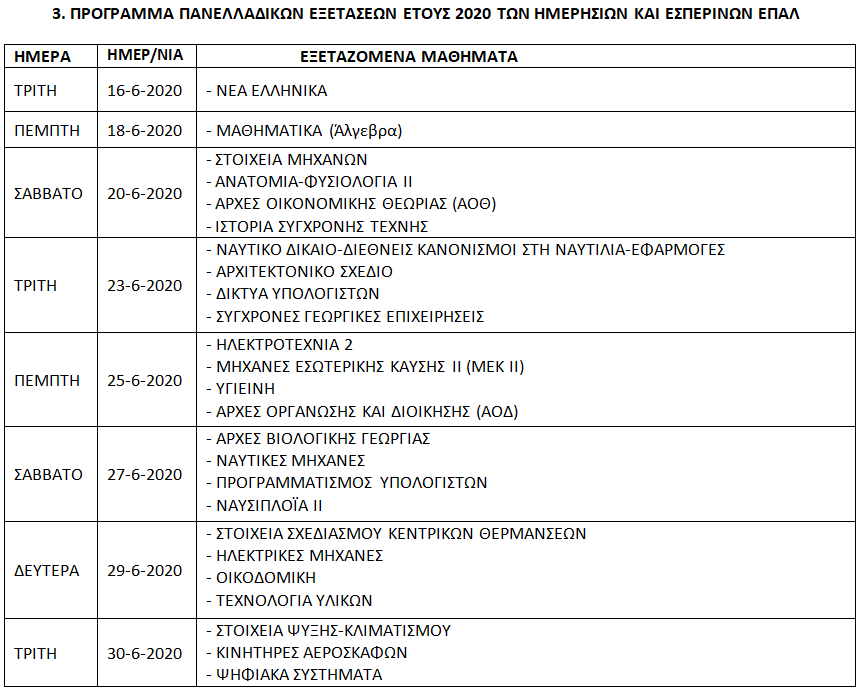 Οι εξετάσεις των ειδικών μαθημάτων θα πραγματοποιηθούν από την 1η έως την 13η Ιουλίου 2020.