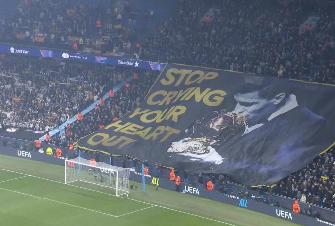Το πανό έγραφε «Σταμάτα να κλαις», με τους φίλους των «πολιτών» να προσπαθούν από νωρίς να επηρεάσουν ψυχολογικά τον Βραζιλιάνο άσο της Ρεάλ Μαδρίτης.