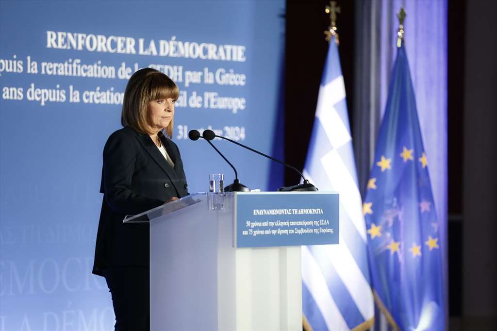 «Η ενδυνάμωση της δημοκρατίας αποκτά υπαρξιακή σημασία σε μια εποχή ανατροπών και διακινδυνεύσεων» τόνισε η Πρόεδρος της Δημοκρατίας Κατερίνα Σακελλαροπούλου, κατά την ομιλία της στην επετειακή εκδήλωση «Ενδυναμώνοντας τη Δημοκρατία – 50 χρόνια από την ελληνική επανεπικύρωση της ΕΣΔΑ και 75 χρόνια από την ίδρυση του Συμβουλίου της Ευρώπης», που διοργανώνουν η Προεδρία της Δημοκρατίας και η Βουλή των Ελλήνων στο Ζάππειο Μέγαρο.