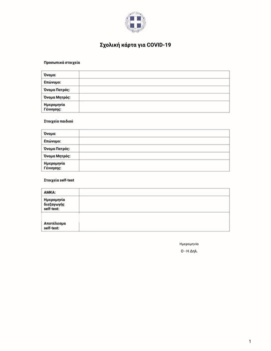 Οι γονείς/νόμιμοι κηδεμόνες ενημερώνονται από τους εκπαιδευτικούς για την υποχρέωση της διενέργειας του αυτοδιαγνωστικού ελέγχου νόσησης κατά του κορωνοϊού COVID 19 για δύο (2) φορές την εβδομάδα για κάθε μαθητή/τρια προκειμένου να εξασφαλισθεί η μέγιστη δυνατή προστασία της εκπαιδευτικής κοινότητας.