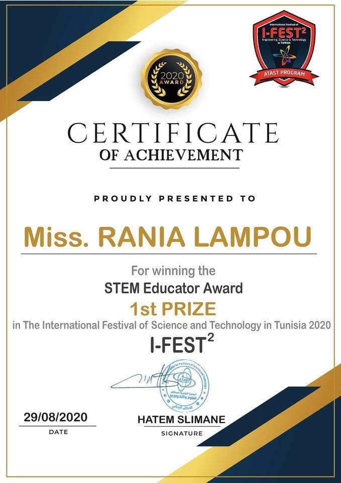 Για τις δράσεις αυτές έλαβα αρχικά το βραβείο “Particles4U” από το CERN. Ήταν το Πρώτο Διεθνές Βραβείο για την Ελλάδα ανάμεσα σε 15 χώρες που συμμετείχαν στον διαγωνισμό. Στη συνέχεια ακολούθησαν πολλές άλλες διεθνείς διακρίσεις. Χάρη στα πρότζεκτ αυτά συγκαταλέγομαι στη λίστα των 50 καλύτερων εκπαιδευτικών του κόσμου με το “Global Teacher Prize 2019 (Varkey Foundation)”. Από τότε συνεργάζομαι με σχολεία του εξωτερικού και υλοποιώ διαθεματικά πρότζεκτ τα οποία βραβεύονται μέχρι σήμερα σε παγκόσμιο επίπεδο.