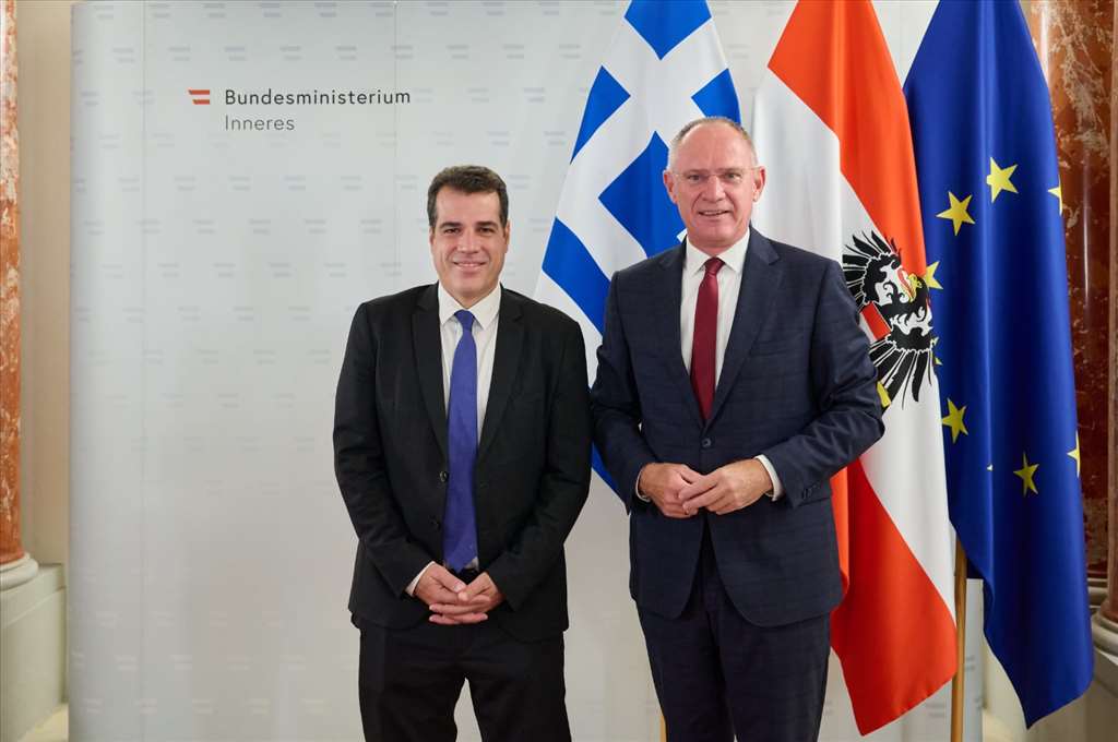 Ο Υπουργός Μετανάστευσης και Ασύλου, κ. Θάνος Πλεύρης, πραγματοποίησε επίσημη επίσκεψη στη Βιέννη, όπου είχε συνάντηση με τον Ομοσπονδιακό Υπουργό Εσωτερικών της Αυστρίας, κ. Gerhard Karner, στο πλαίσιο της στενής συνεργασίας Ελλάδας και Αυστρίας για την αντιμετώπιση των προκλήσεων στο μεταναστευτικό και για την ενίσχυση του διαλόγου σε ευρωπαϊκό επίπεδο.