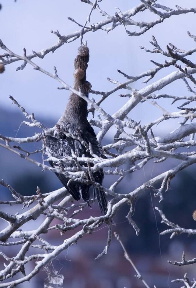 Παράλληλα, περιμετρικά, στις όχθες της λίμνης, μπορεί να υπάρχουν αυτή την περίοδο μέχρι και 10 πουλιά κρεμασμένα νεκρά, ψηλά σε δέντρα.