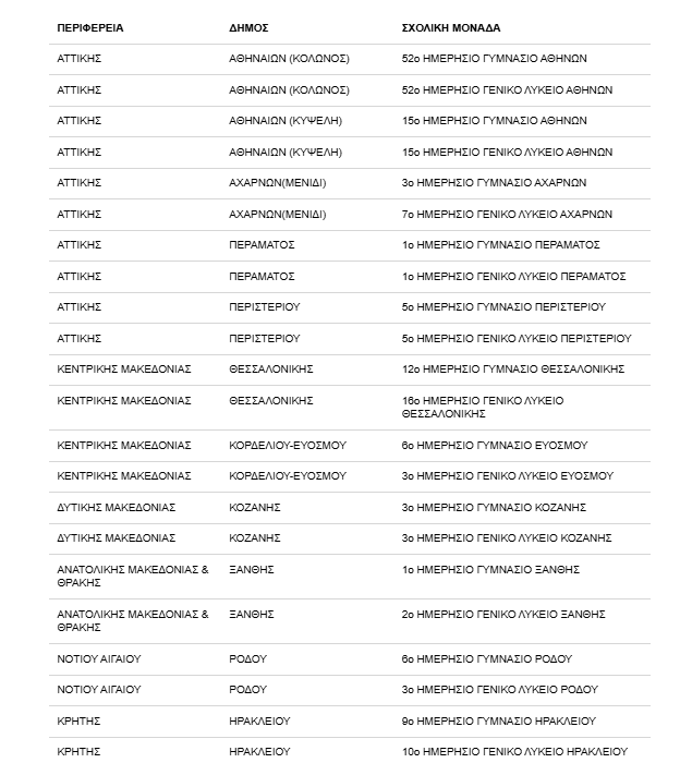Αναλυτικά οι σχολικές μονάδες που θα μετατραπούν σε ΔΗΜ.Ω.Σ.
