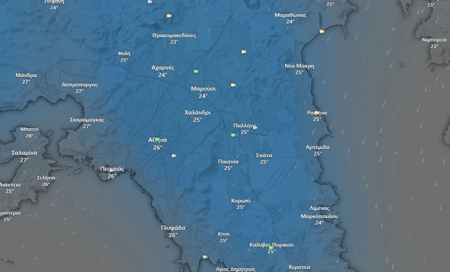 Σύμφωνα λοιπόν με το windy, βροχή φαίνεται πως θα πέσει από νωρίς το μεσημέρι σε πολλές περιοχές της Αττικής όπως Μαρούσι, Χαλάνδρι, Παλλήνη, Σπάτα, Παιανία, Κορωπί, Γραμματικό, Καπανδρίτι και αλλό.