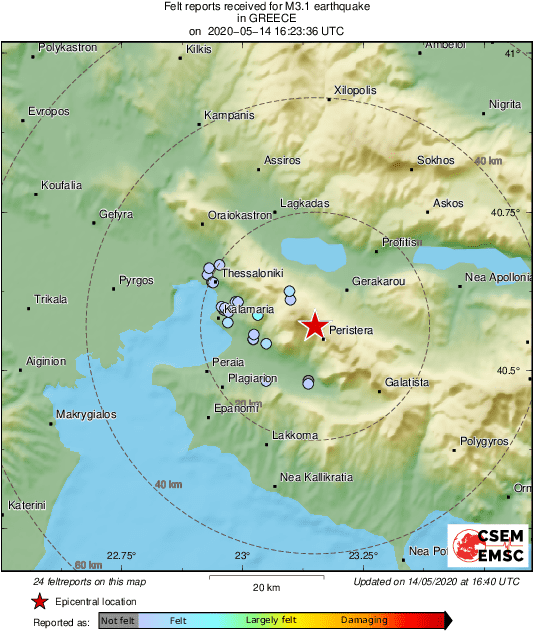 Ο σεισμός έγινε στις 18.23 με επίκεντρο 16 χιλιόμετρα Νοτιοανατολικά της Θεσσαλονίκης…
