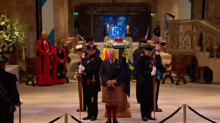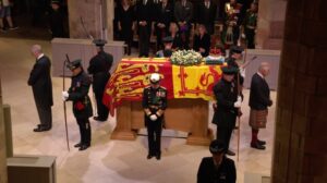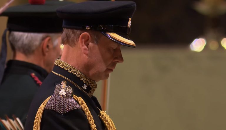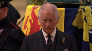 Ο βασιλιάς Κάρολος Γ’, η βασιλική πριγκίπισσα Άννα, ο πρίγκιπας Άντριου και ο πρίγκιπας Έντουαρντ στάθηκαν ο καθένας σε μία από τις τέσσερις πλευρές του δρύινου φέρετρου. Και τα τέσσερα παιδιά της βασίλισσας Ελισάβετ είχαν τα κεφάλια τους σκυμμένα, σε μια τελετή γνωστή ως «Αγρυπνία των Πριγκίπων» (Royal Vigil).