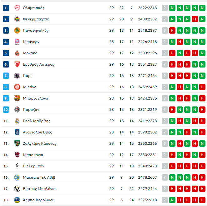 Βαθμολογία Euroleague: Ξέφυγε στο +4 από τον Παναθηναϊκό και κλείδωσε την παρουσία του στα playoffs ο Ολυμπιακός!