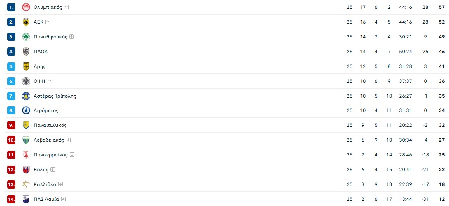 Πλέον η ομάδα του Μεντιλίμπαρ γίνεται το αδιαφιλονίκητο φαβορί για τον τίτλο, ενώ Παναθηναϊκός και ΠΑΟΚ με τις νίκες τους απέναντι σε Παναιτωλικό και Αστέρα Τρίπολης, αντίστοιχα, μείωσαν από την ΑΕΚ στους τρεις βαθμούς!
